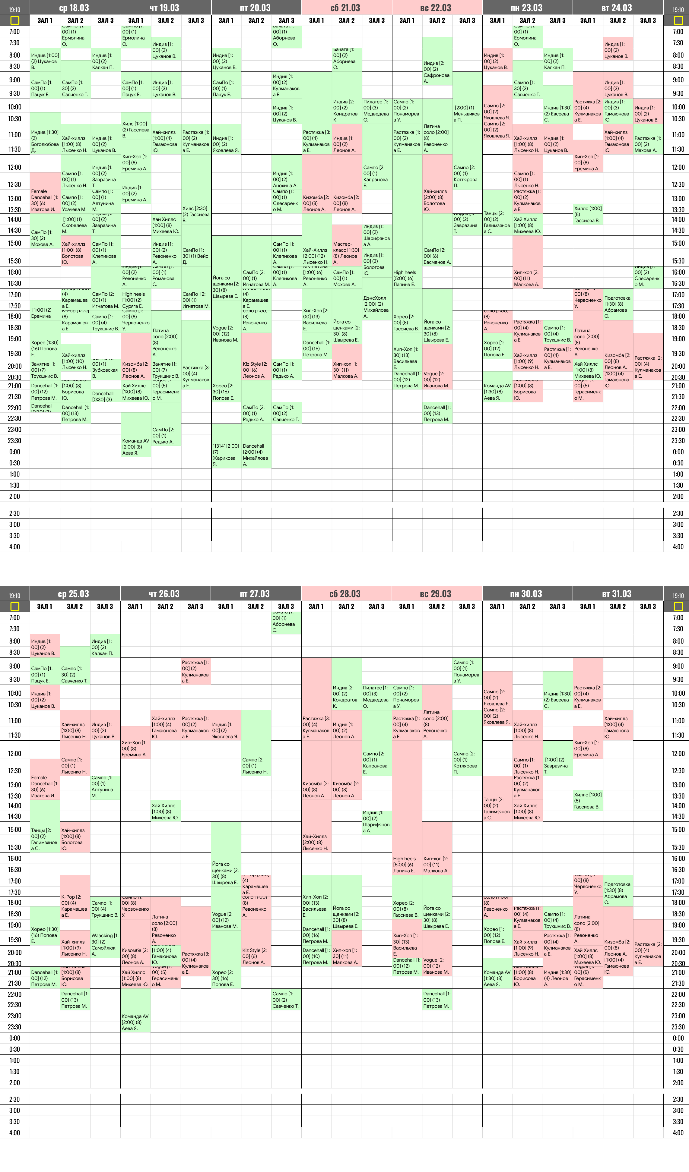 Расписание